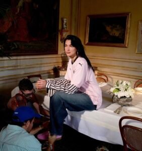 Dua Lipa styling a shoot for Palermo FC. Image Credits: PalermoFC/X