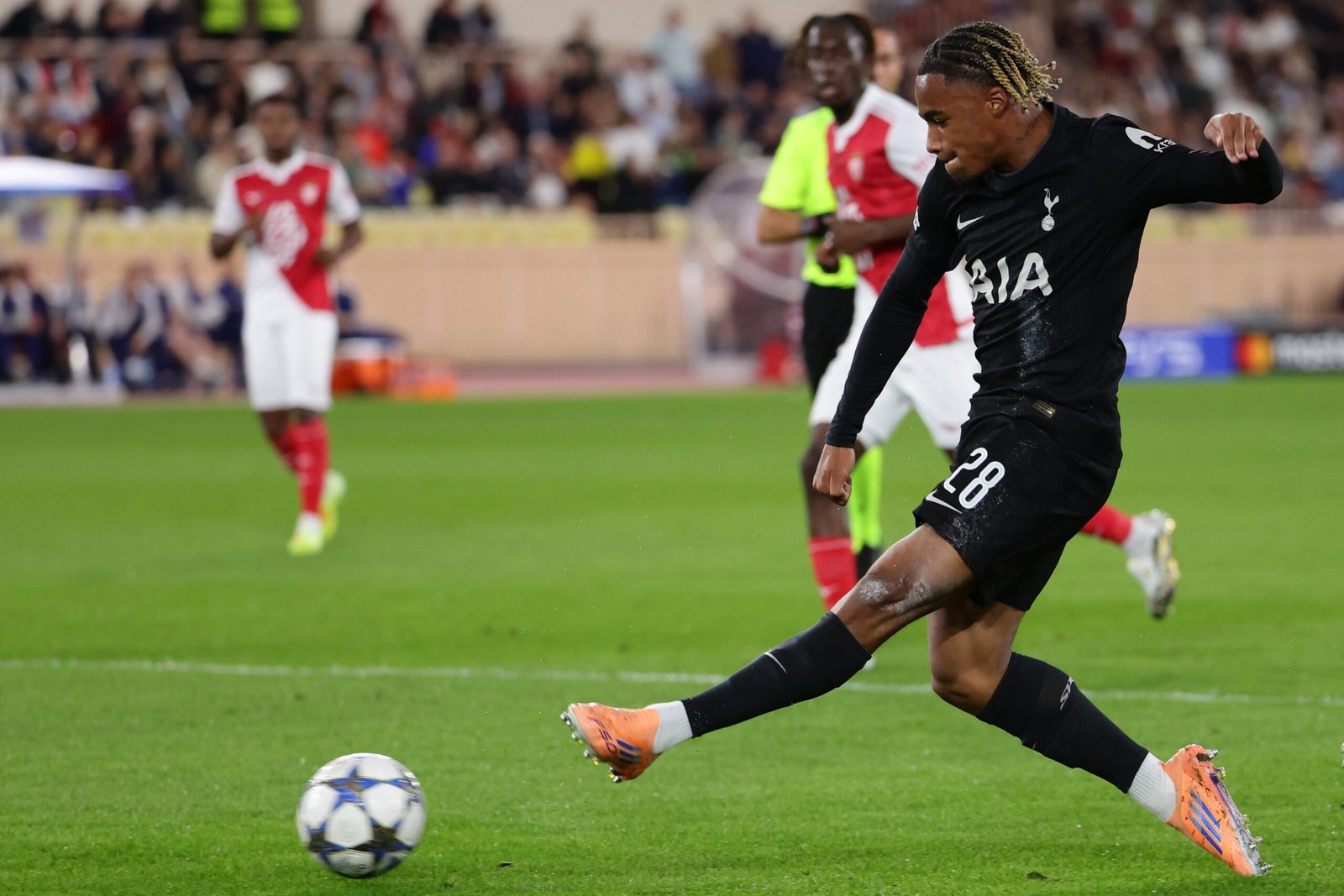 Tottenham Hotspur’s Wilson Odobert suffered an injury scare during the Champions League draw with Monaco.